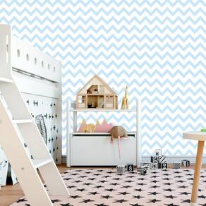 Papel De Parede Azul Claro E Branco Decorativo Adesivo Sala