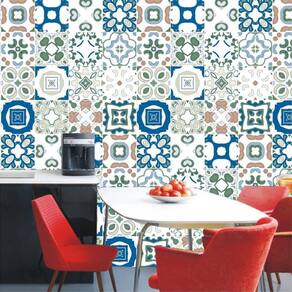 Papel de parede azulejo branco e azul adesivo cozinha pia