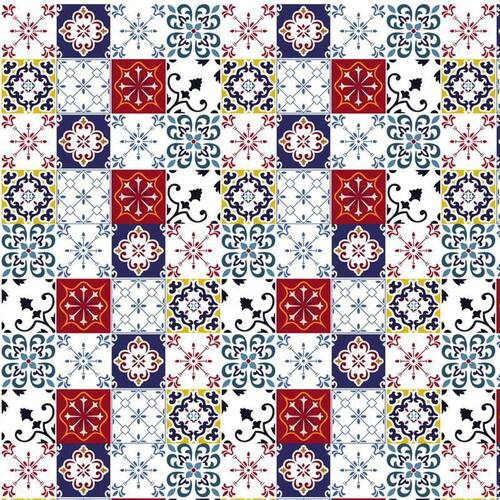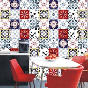 Papel de parede azulejo vermelho e azul cozinha lavatório