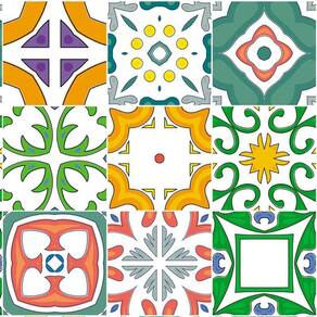 Papel de parede azulejo vermelho verde laranja cozinha pia