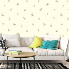 Papel De Parede Borboletas Fundo Amarelo Decorativo Adesivo
