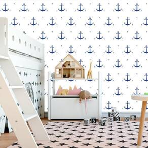 Papel De Parede Branco Com Ancoras Azuis Quarto Infantil
