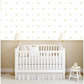 Papel De Parede Branco Com Coroa Dourada Infantil Adesivo