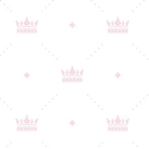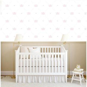 Papel De Parede Branco Com Coroa Rosa Claro Infantil Adesivo