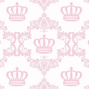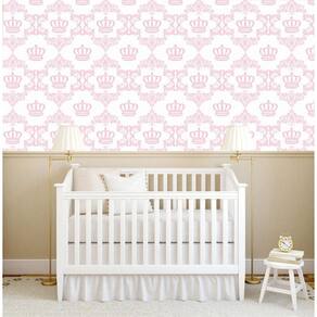 Papel De Parede Branco Coroas Rosa Claro Quarto Bebê Adesivo