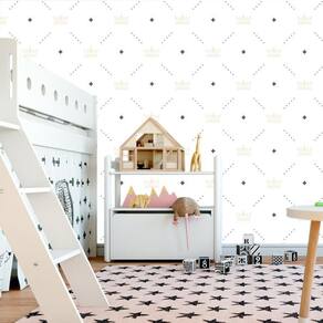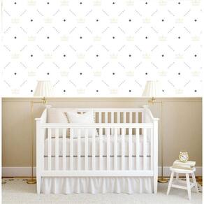 Papel De Parede Branco E Azul Com Coroa Infantil Adesivo