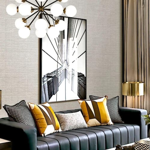 Com um design que imita o aspecto têxtil, ele traz uma sensação de aconchego e conforto para o ambiente. Sua combinação de cores branca e cinza é versátil e combina com diversos estilos de decoração.
