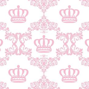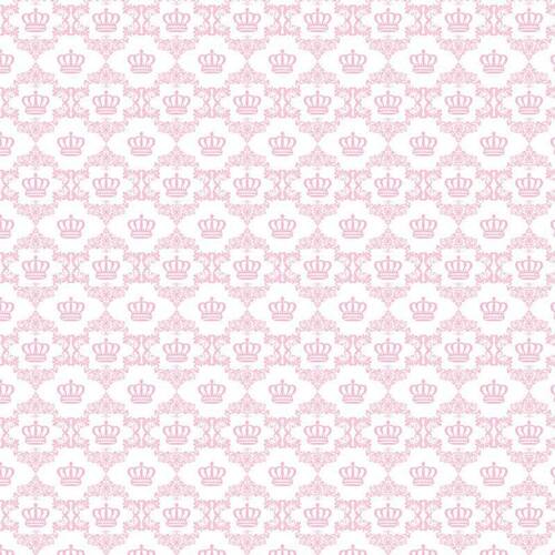 Papel De Parede Branco E Coroas Rosa Infantil Quarto Bebê