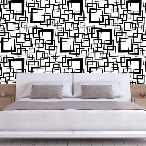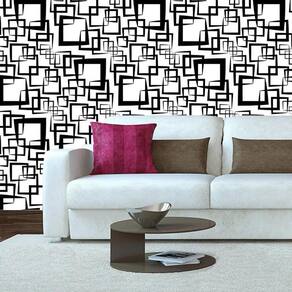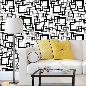 Papel de parede branco e quadrados preto geométrico adesivo