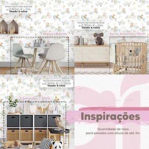 Vantagens: Aplicação rápida, fácil e sem sujeira; Não precisa de cola; Lavável com pano macio umedecido em água e sabão neutro e resistente à água; Antimofo e antibacteriano; Não tóxico Antichamas Sobreposição de 1cm e continuidade dos desenhos para facilitar a emenda do próximo rolo.