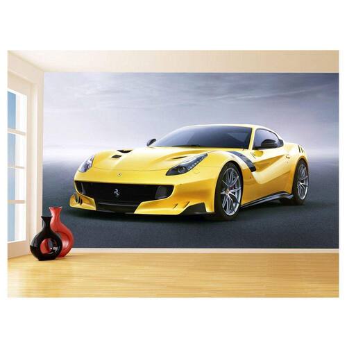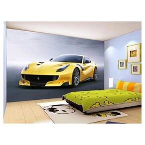 Papel De Parede Carro Ferrari Amarela Garagem 3,5M Car164
