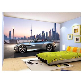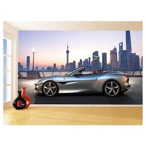 Papel De Parede Carro Ferrari Prata Céu Sport 3,5M Car136