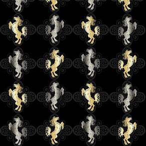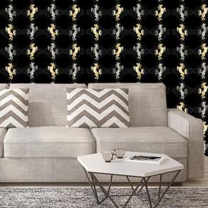 Papel De Parede Cavalo Dourado E Cinza Fundo Preto Adesivo