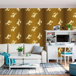 Papel De Parede Cavalo Dourado Fundo Marrom Adesivo Lavavel