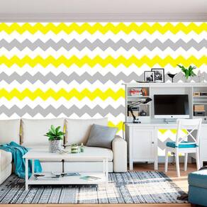 Papel De Parede Chevron Amarelo Cinza E Branco Adesivo Sala
