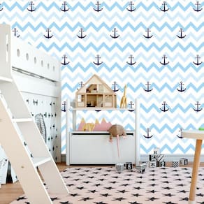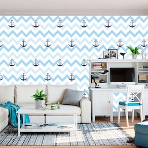 Papel De Parede Chevron Azul Claro Com Ancora Adesivo Quarto