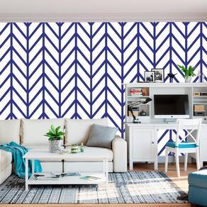 Papel De Parede Chevron Azul Escuro E Branco Adesivo Sala