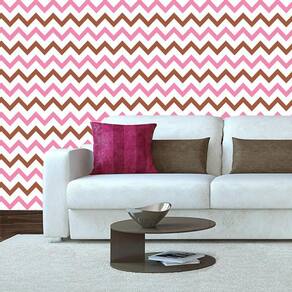 Papel De Parede Chevron Vermelho Rosa E Branco Adesivo Sala