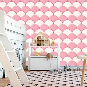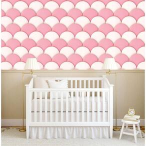 Papel De Parede Circulos Rosa E Branco Infantil Adesivo