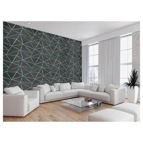 Papel De Parede Concreto Linhas Azul Turquesa 3,5M Kkt270