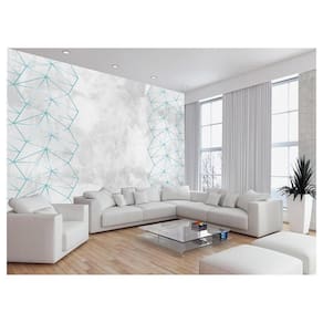 Papel De Parede Concreto Linhas Azul Turquesa 3,5M Kkt313