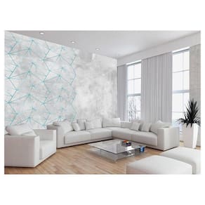 Papel De Parede Concreto Linhas Azul Turquesa 3,5M Kkt327
