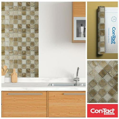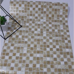 Papel de Parede Contact Pastilha Dourada Mesclada Adesivo Autocolante Impermeável Cozinha Banheiro