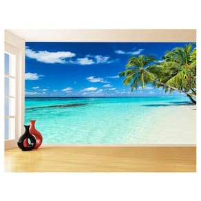 Papel De Parede Coqueiros Praia Mar Azul Água 3,5M Npr261