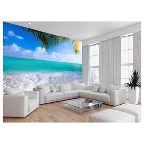 Papel De Parede Coqueiros Praia Mar Azul Água 3,5M Npr305