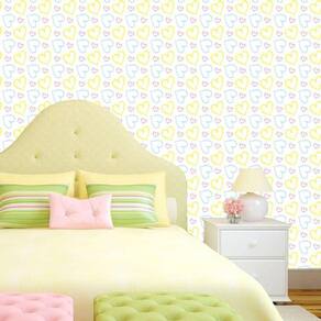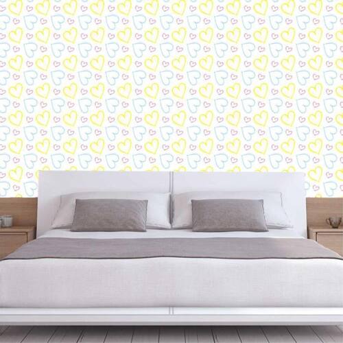 Papel de parede corações amarelo vermelho azul autocolante