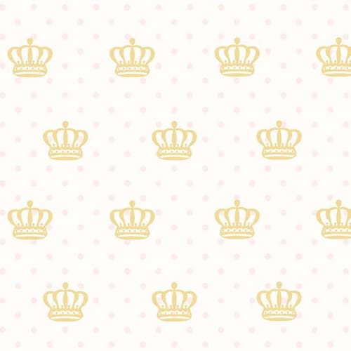 Papel de parede coroa dourada e ciruclos rosa autocolante