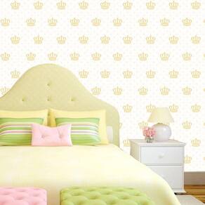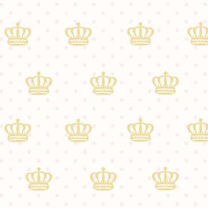 Papel de parede coroa dourada e ciruclos rosa autocolante
