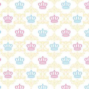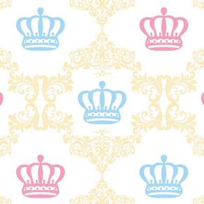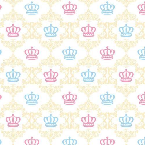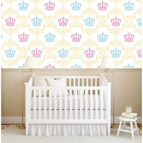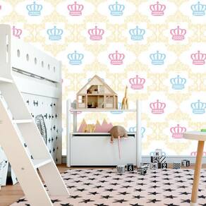 Papel De Parede Coroa Rosa E Azul Desenho Amarelo Adesivo