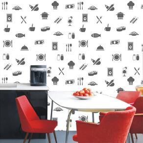 Papel de parede cozinha preto e branco autocolante lavável