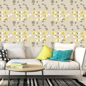 Papel de parede cubos amarelos cinza marrom autocolante sala