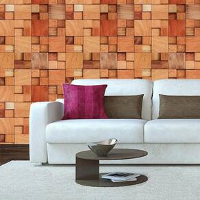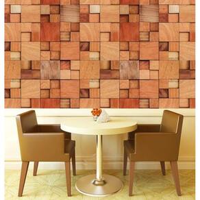 Papel De Parede Cubos Madeira Mogno Claro Autocolante Sala