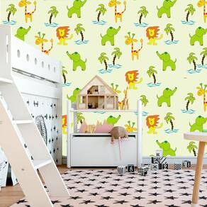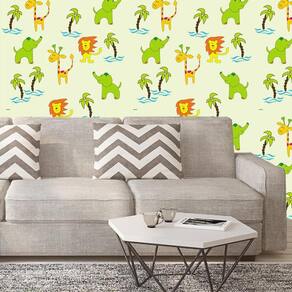 Papel De Parede Elefante E Girafa Adesivo Decorativo Lavavel