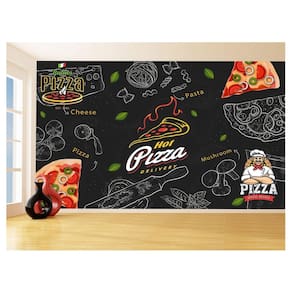 Papel De Parede Estilo Lousa Pizza Ingrediente 3,5M Lcb13