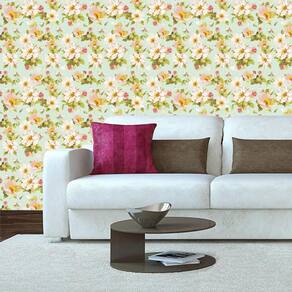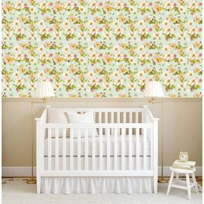 Papel De Parede Floral Flores Rosas Fundo Verde Adesivo Sala