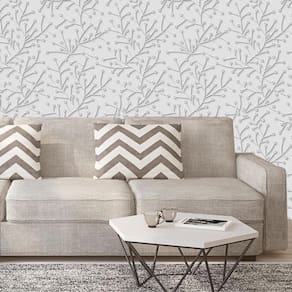 Papel De Parede Floral Galhos Com Fundo Cinza Adesivo Sala