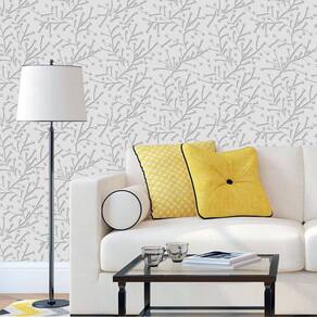 Papel De Parede Floral Galhos Com Fundo Cinza Adesivo Sala