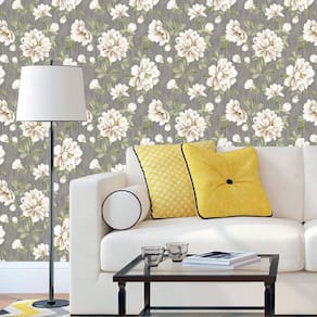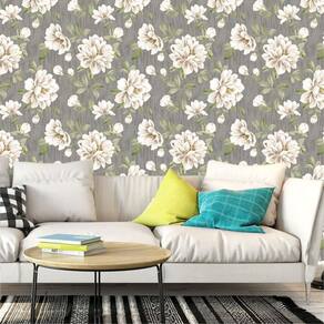 Papel De Parede Flores Branca Em Textura Autocolante Sala