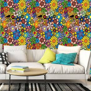Papel De Parede Flores Coloridas Autocolante Vinilico Quarto