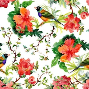 Papel De Parede Flores Vermelhas E Passarinho Adesivo Sala