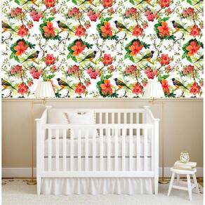 Papel De Parede Flores Vermelhas E Passarinho Adesivo Sala