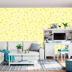 Papel de parede fundo amarelo circulos rosa e verde adesivo