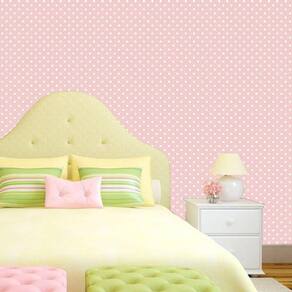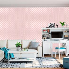 Papel de parede fundo rosa e circulos branco poa autocolante