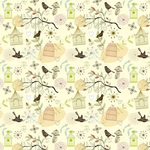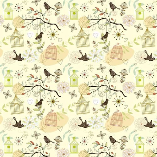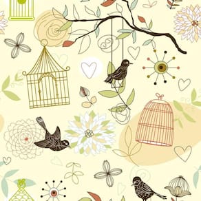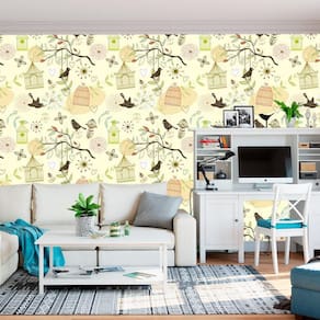 Papel De Parede Gaiola E Pássaros Amarelo Claro Adesivo Sala