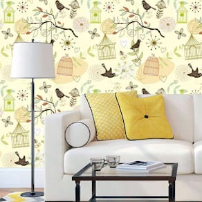Papel De Parede Gaiola E Pássaros Amarelo Claro Adesivo Sala