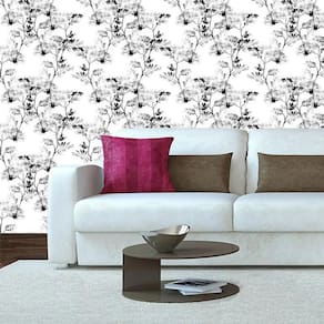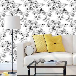 Papel De Parede Galhos Com Floral Flores Pretas Adesivo Sala